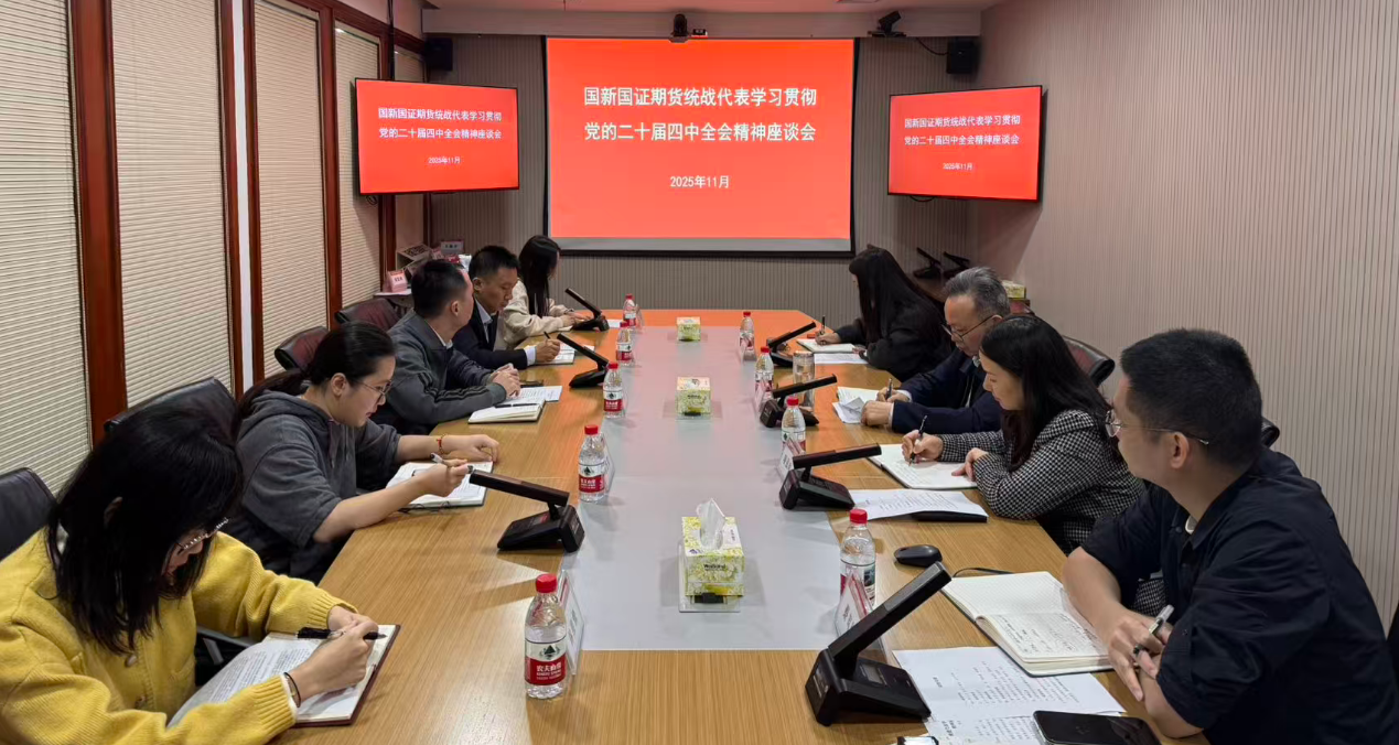 为深入学习贯彻党的二十届四中全会精神,全面落实习近平总书记关于做好新时代党的统一战线工作的重要思想,进一步凝聚共识、汇聚力量,11月20日国新国证期货有限责任公司党总支组织召开统战代表学习贯彻党的二十届四中全会精神座谈会。会议由公司党总支书记、董事长徐东同志主持,党总支宣传委员项泓瑜同志、组织委员胡雯娟同志出席;公司党外知识分子、民主党派、出国和归国留学人员等共计7名统战代表参加;人力资源部、综合管理部负责人列席会议。